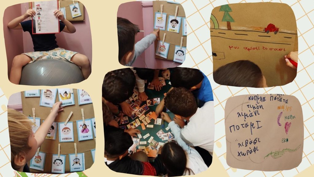 Εικόνα 3: Μαθητές εμπλέκονται σε ομαδικές δραστηριότητες και αναγνώρισης, διαχείρισης και έκφρασης συναισθημάτων.