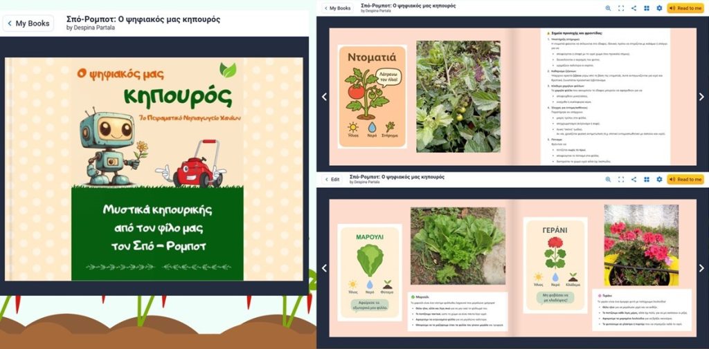 Αξιοσημείωτο είναι ότι η χρήση της ΤΝ δεν περιορίστηκε στη στιγμή της αναζήτησης. Τα παιδιά κράτησαν τις πληροφορίες, τις κατέγραψαν, τις επεξεργάστηκαν και τελικά τις ενσωμάτωσαν στο δικό τους διαδραστικό ψηφιακό βιβλίο, που δημιούργησαν στην εφαρμογή BookCreator. Εκεί κατέγραψαν τι έμαθαν, πώς φρόντισαν τα φυτά, τι τα δυσκόλεψε. Με απλά λόγια, έγιναν συγγραφείς της ίδιας τους της εμπειρίας.