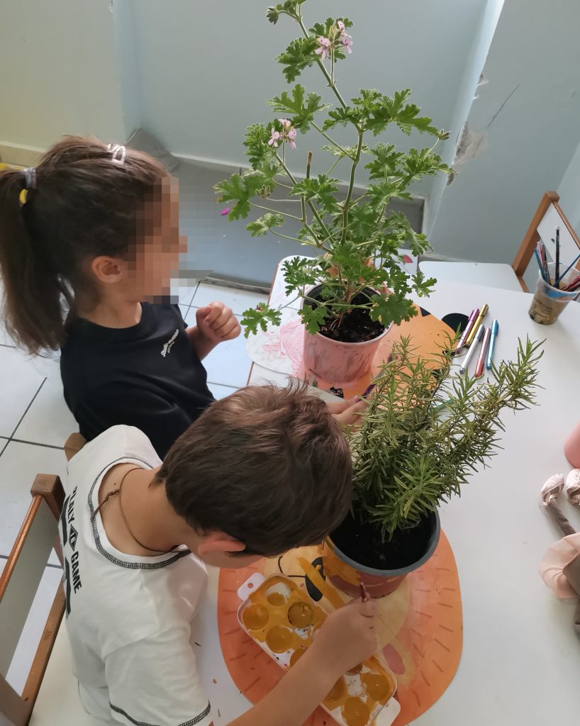 Με χρώματα- τέμπερες, τα παιδιά διακόσμησαν γλάστρες. Κάθε παιδί ανέλαβε μία ή περισσότερες γλάστρες, τις οποίες προσέφεραν ως δώρο στην γιορτή της μητέρας, ενισχύοντας το αίσθημα προσωπικής ευθύνης.