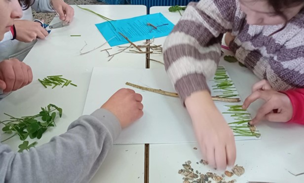 - Δημιουργία έργων με φυσικά υλικά που συνέλεξαν τα ίδια τα παιδιά